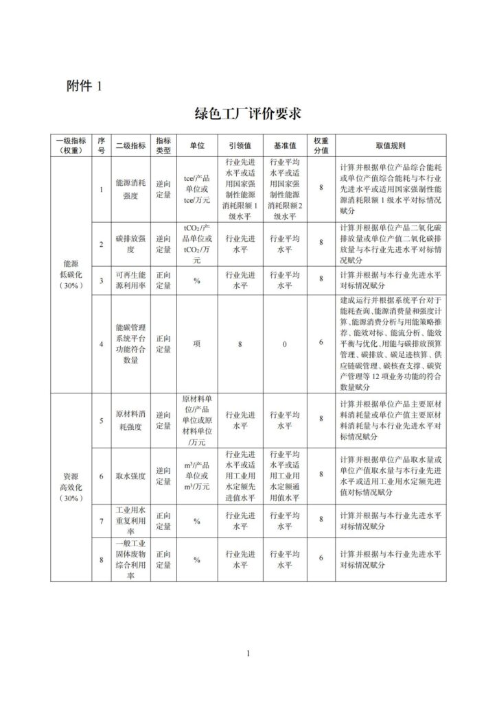 附件:1.绿色工厂评价要求
